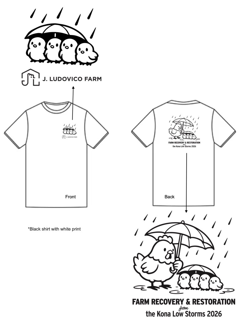 The recent Kona Low storms affected a lot of people, homes, businesses and farm. We were among those who suffered significant losses. We lost over two and half flocks totaling over 2000 chickens.